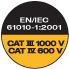 IEC/EN 61010-1:2001 到 1000V CAT III,600V CAT IV。 |