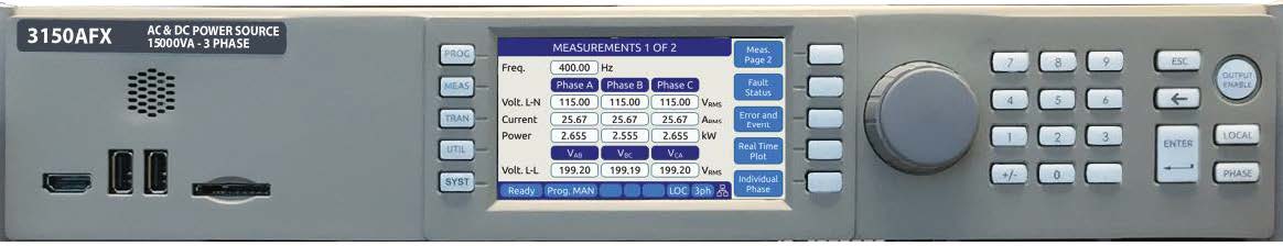 AFX系列是高功率开关交流电源,可输出AC,AC+ DC和DC,功率范围从6kVA到150kVA,支持单相、分相和三相输出。AFX系列采用了新的数字转换技术,15 kVA的机柜仅4U(7”)高,功率密度在行业内是高的。
